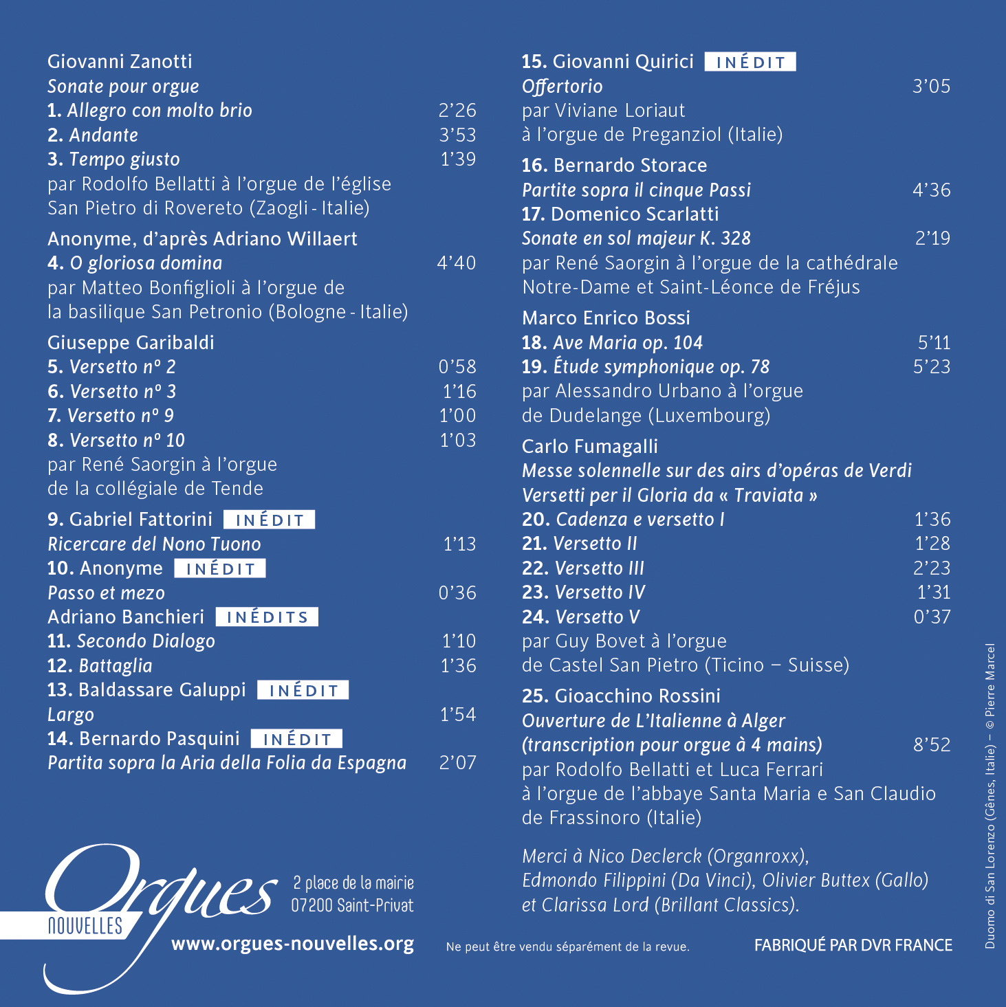 25. Gioacchino Rossini, Ouverture de L’Italienne à Alger (transcription pour orgue à 4 mains) par Rodolfo Bellatti et Luca Ferrari à l’orgue de l’abbaye Santa Maria e San Claudio de Frassinoro (Italie)