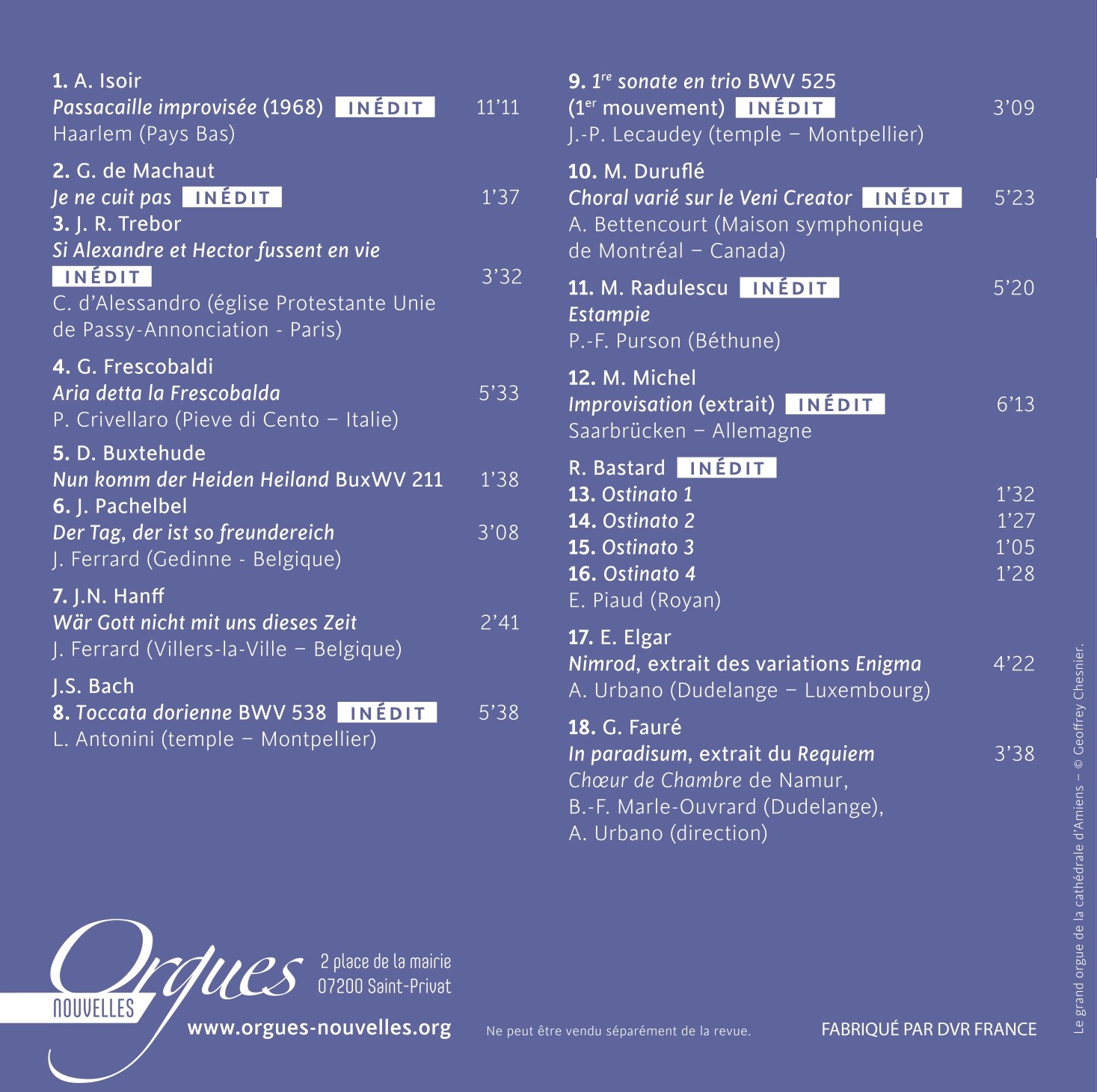 par Christophe d’Alessandro à l’orgue de l’église Protestante Unie de Passy Annonciation (Paris) – Merci à Hyun-Hwa Cho pour l’accueil, la direction artistique et l’enregistrement